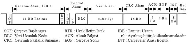 CAN sistemlerinde veriler paketler halinde iletilir. Ancak iki tip paketleme yapılır ve özel adları da vardır. 11bit tanımlayıcıya sahip olanlar CAN2.0A diğer adıyla Standart CAN, 29bit tanımlayıcıya sahip olanlara ise CAN2.0B diğer adıyla Geliştirilmiş (Extended) CAN denir. Aralarındaki temel fark ise tanımlanabilinecek mesaj sayısıdır. Standart CAN de 2^11 = 2048 mesaj tanımlanabilinirken, Geliştirilmiş CAN de 2^29 = 536.870.912…mesaj tanımlanabilinir. Bu bilginin tutulduğu alana mesaj id alanı denir. Mesaj önceliğini belirlemede buradaki sayı dikkate alınır. Ayrıca, mesaj id alanı RTR biti de içerir. Eğer 1 ise gönderilecek pakete İstek Çerçevesi (Remote Frame) denir. Eğer 0 ise Veri Çerçevesi (Data Frame) denir. Bir ünite neden Data Frame yollar? Bu sorunun yanıtı kendisinde bulunan veriyi iletmektir. Peki bir ünite neden istek çerçevesi yollar? Bu sorunun yanıtı da şöyledir. Bazen üniteler başka ünitelerden gelecek bilgiye ihtiyaç duyarlar. Karşı tarafa “bana şu bilgiyi yolla” demenin yolu istek çerçevesi kullanmaktır. İstek çerçevesi yollayan bir ünitenin Veri Alanı (Data Field) yoktur. Çünkü veri istemektedir. İstenen veriye ilişkin bilgi Mesaj ID Alanında vardır.